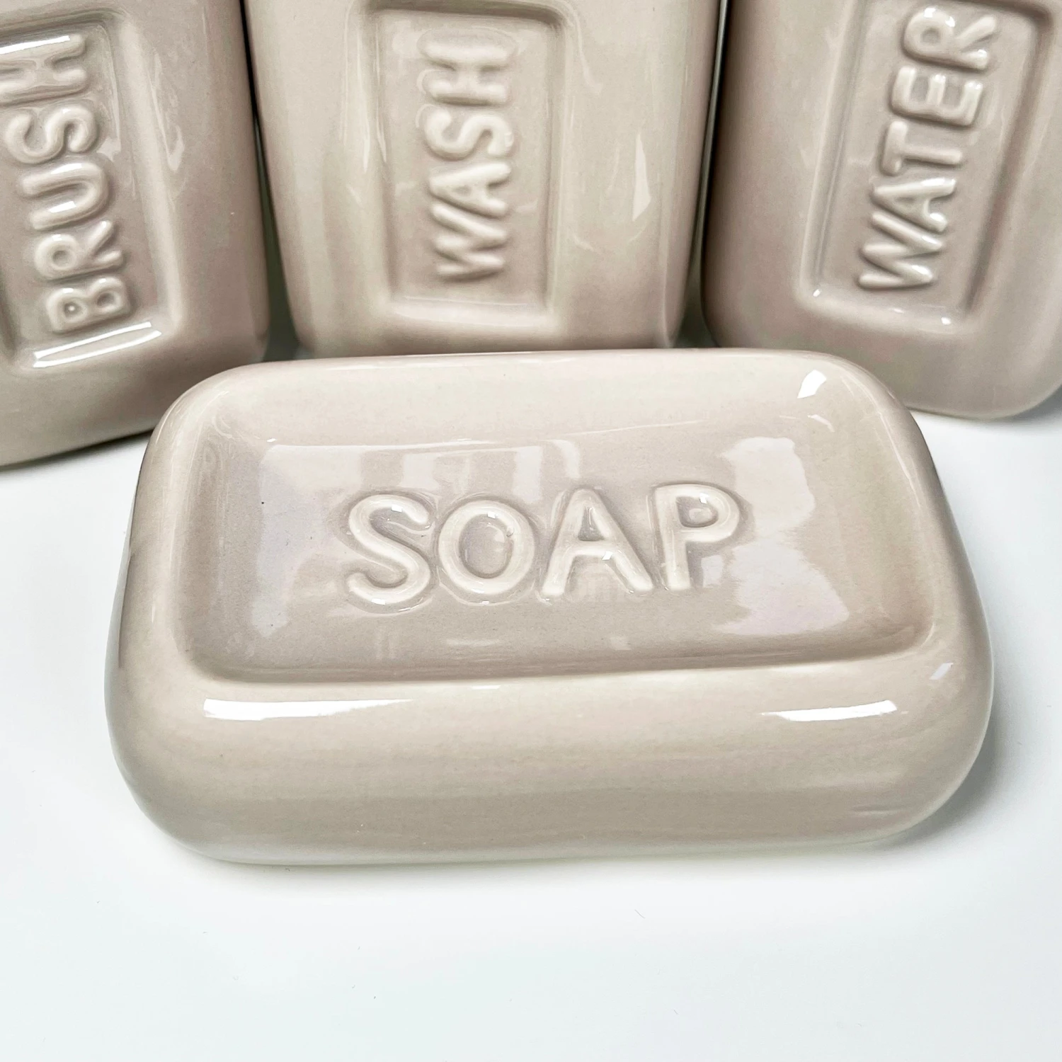 This 4 piece bathroom accessory set boasts a stadium shape and its glazed ceramic material allows for a glossy stone finish. This set includes a 270ml capacity soap dispenser, 220ml capacity tumbler, soap dish and tumbler.