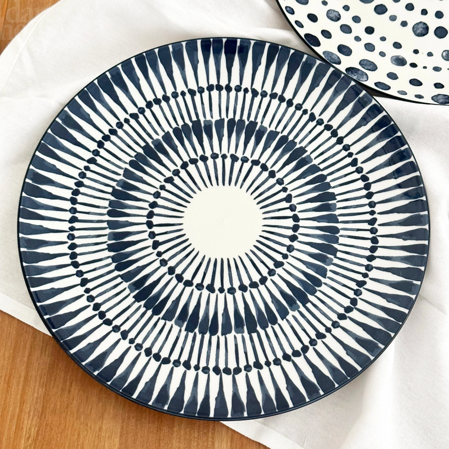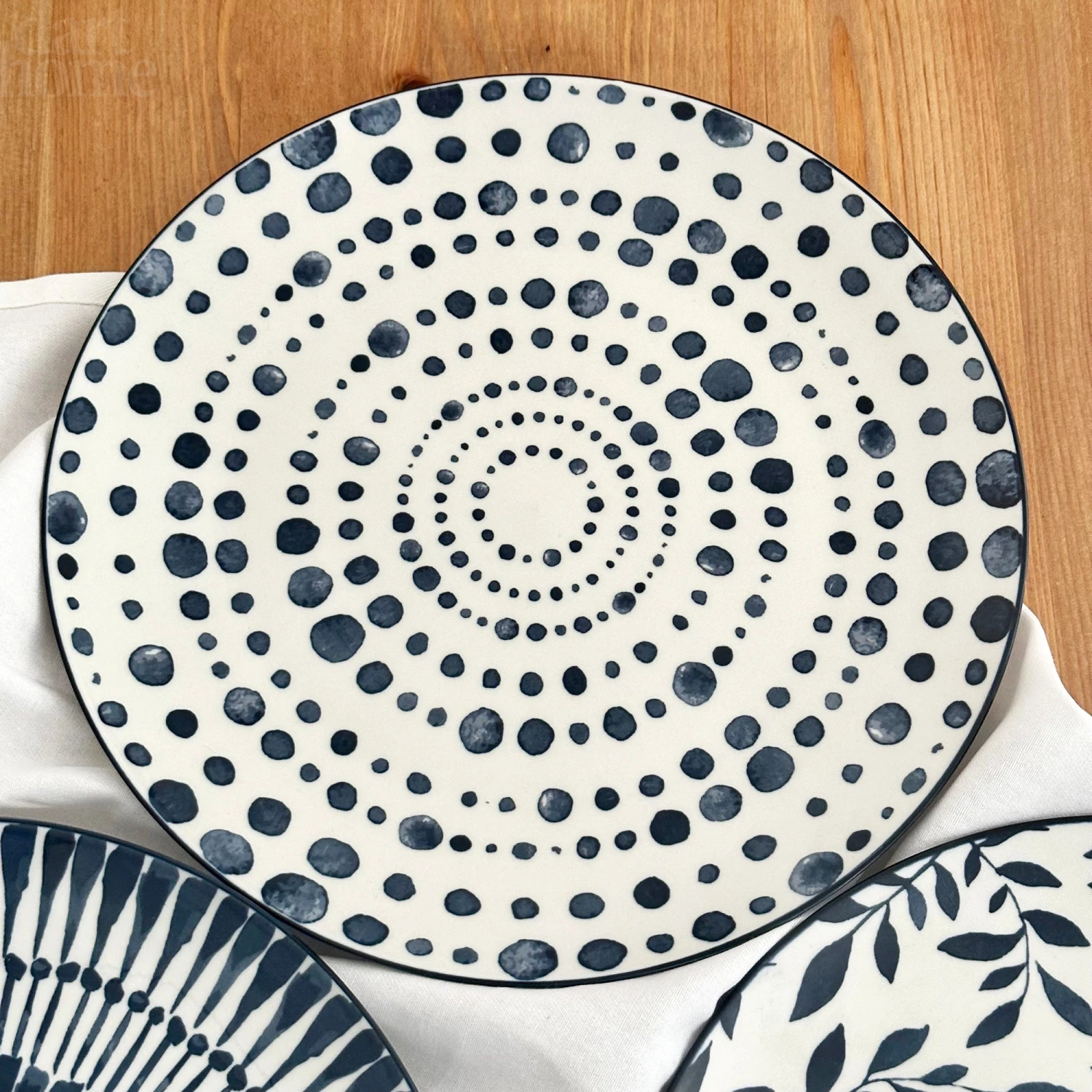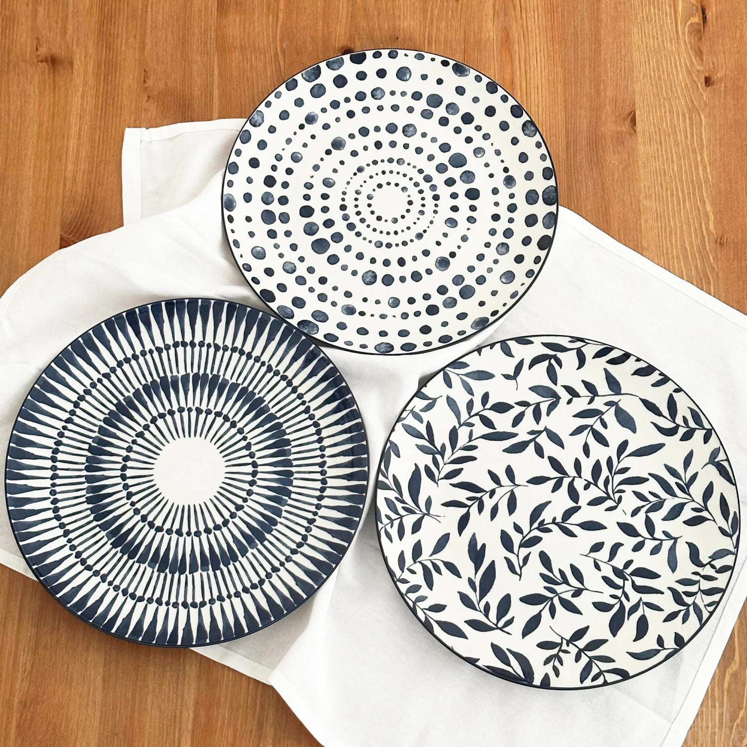 Serve up a feast of Mediterranean flavor with this set of 6 classic dinner plates. Adorned with an ornate blue and white pattern, these high-quality plates make your dining table look elegant and inviting. Enjoy your culinary creations with family and friends in perfect Mediterranean style. 3 patterns. Set of 6 featuring 2 of each pattern.