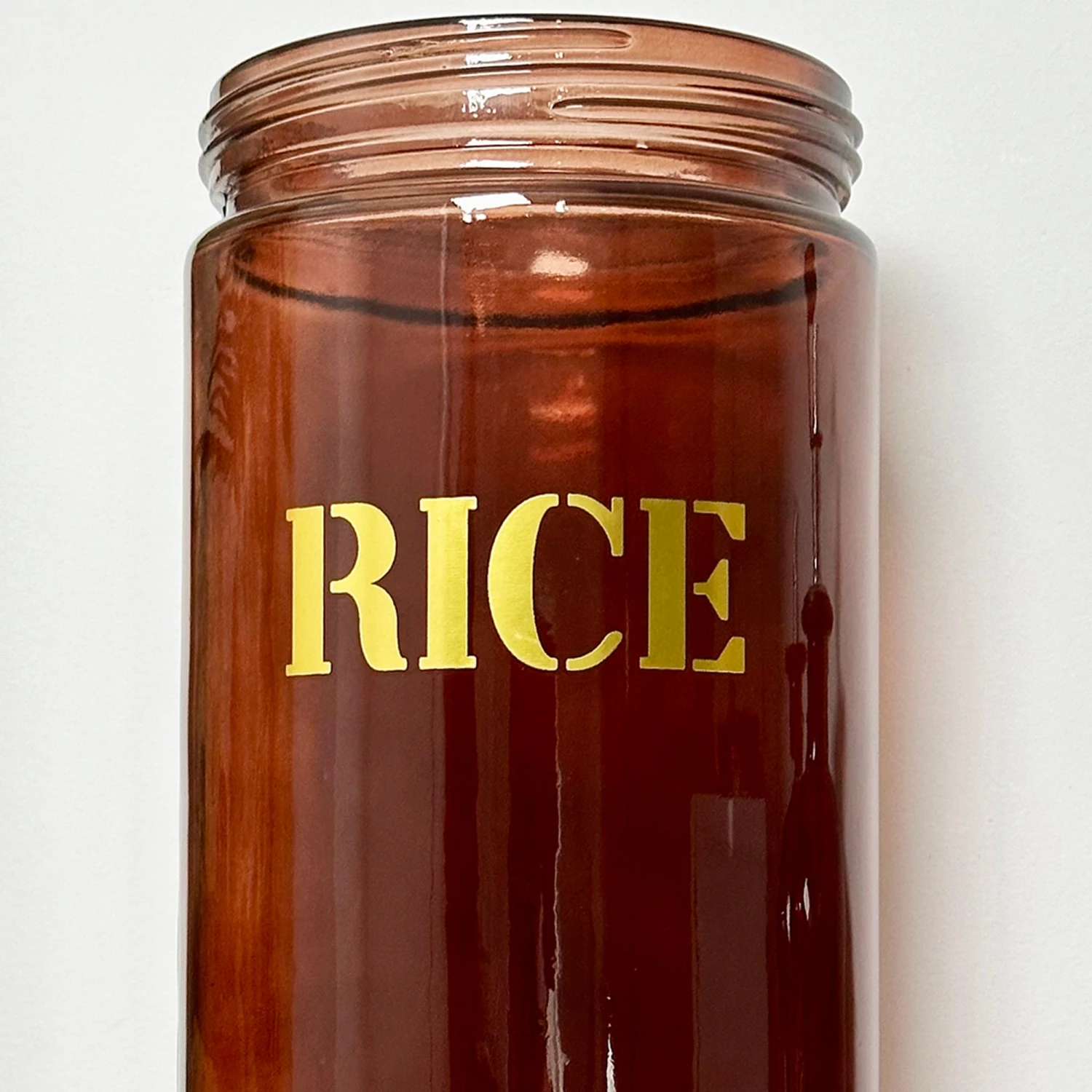 In a beautiful vintage retro 70s style, this stunning amber coloured glass designed to hold over 2kg rice is a piece that needs to be styled in your kitchen immediately. Comes with a black metal top secure lid and gold stencil lettering on the front spelling ‘rice’. This is a round storage jar that your kitchen decor has to have.