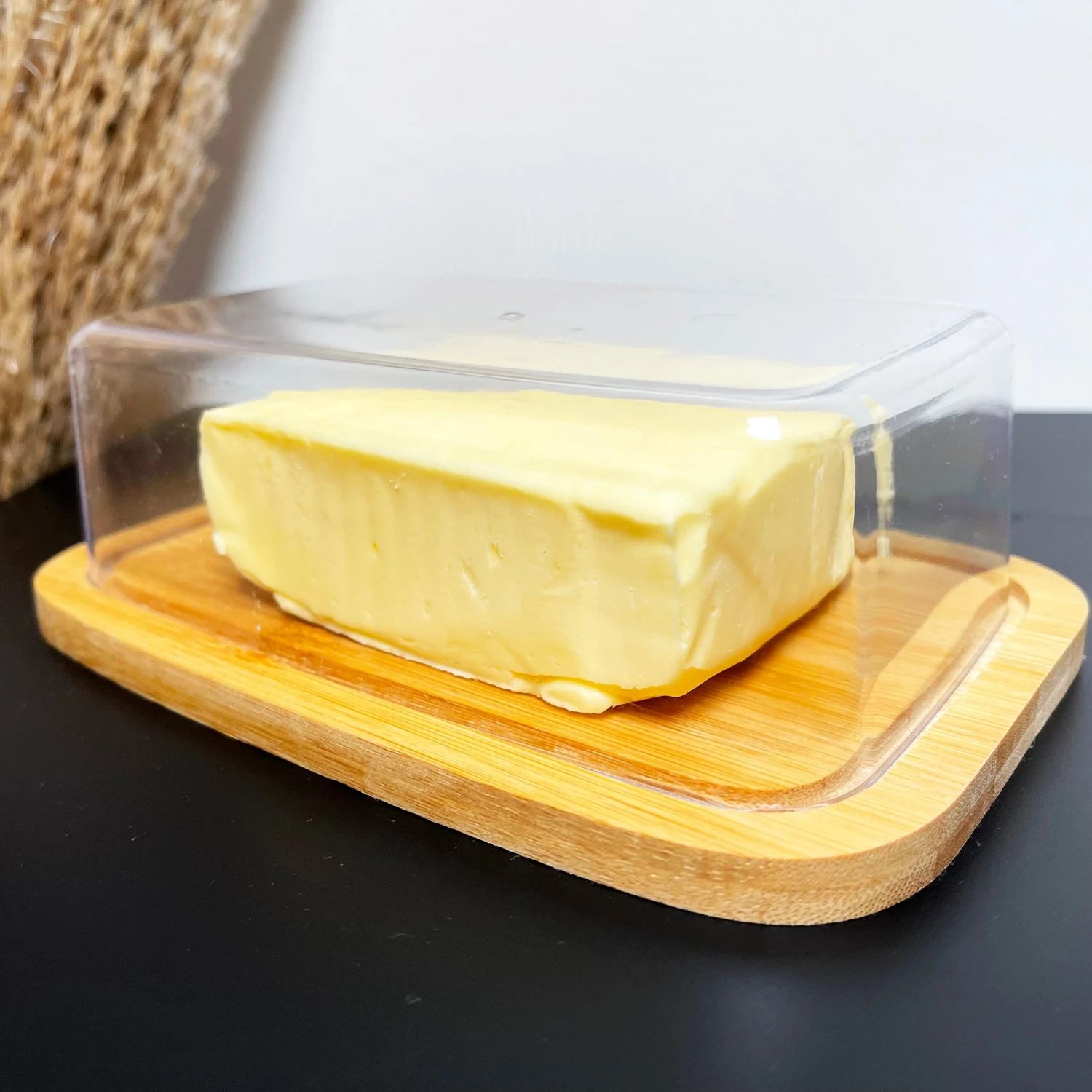 This lidded bamboo butter dish will keep your butter at the ideal temperature at all times to compliment your morning breakfast. This butter dish comes with a bamboo wooden tray and a rounded plastic lid. Hand wash only, clean before use.