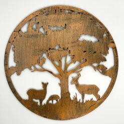 - Features: Black Silhouette, Round Frame, Outdoor, Tree Of Life, Deer Family, Baby Deer