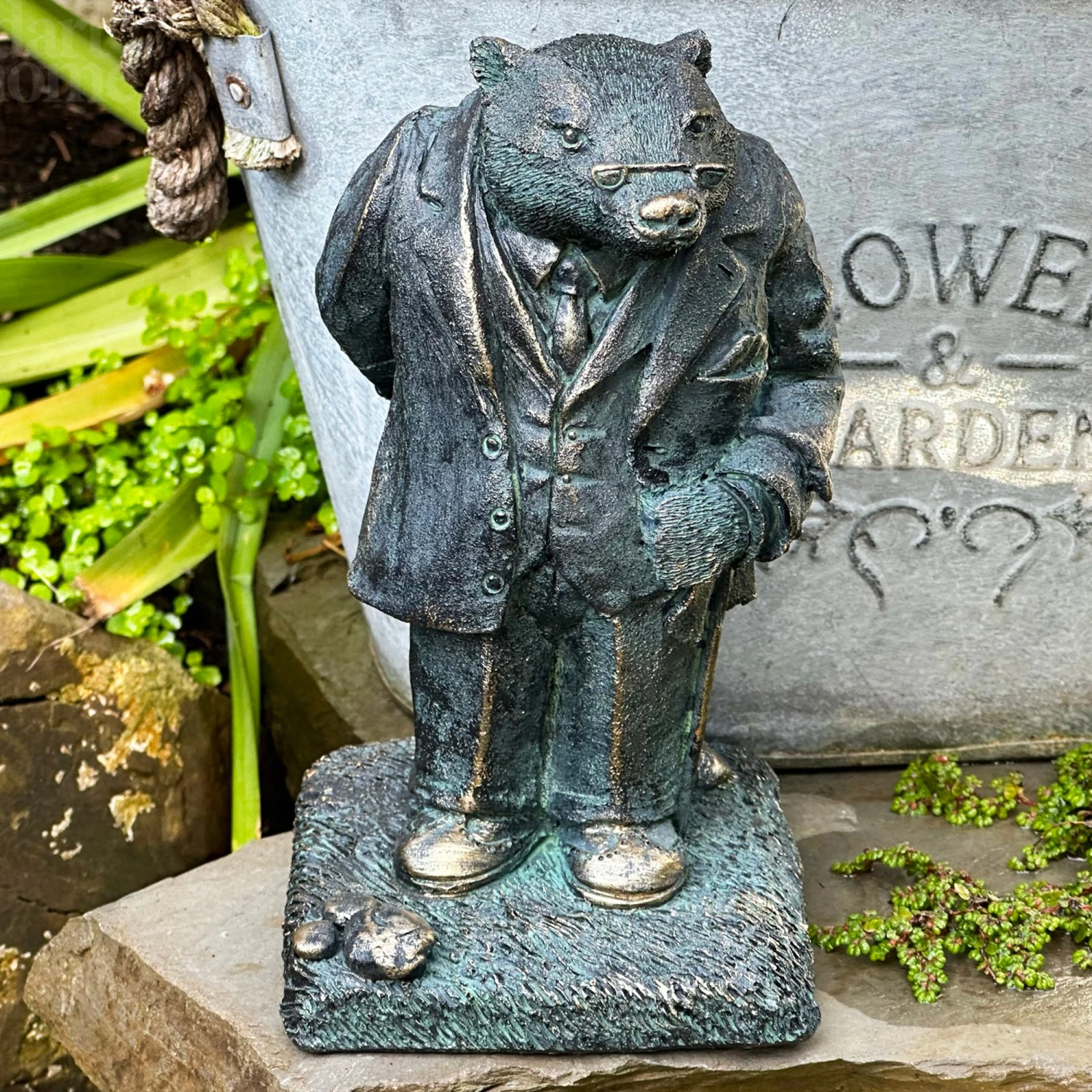 Bring your garden to life with this unique Bronze Mr Badger Figurine crafted from aged resin. This realistic and finely detailed animal ornament is sure to make a bold statement, inspiring conversations with visitors and guests. Perfect for any home garden!