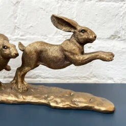 Features: Freestanding, Boxing Hares, Indoor, Bronze Effect Resin