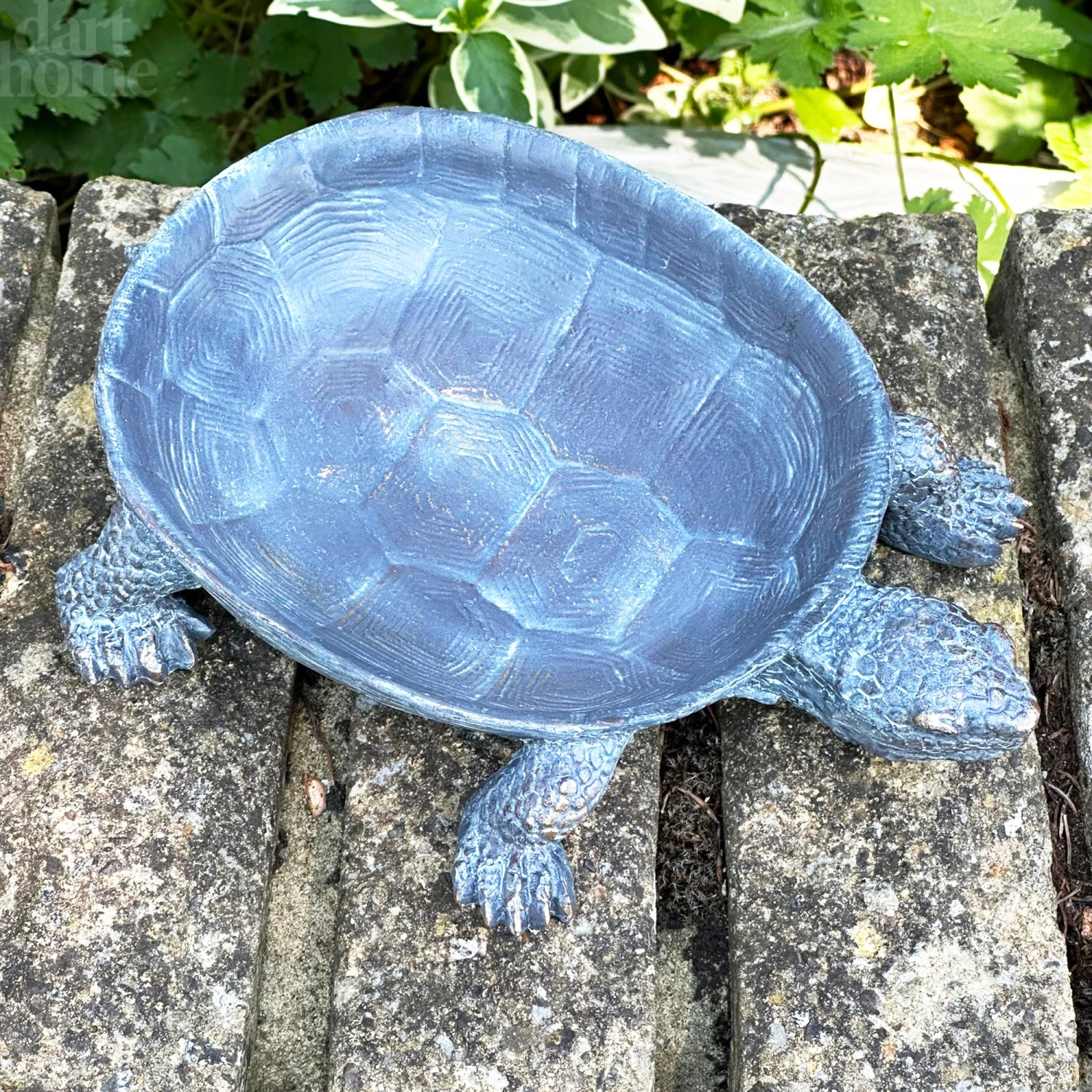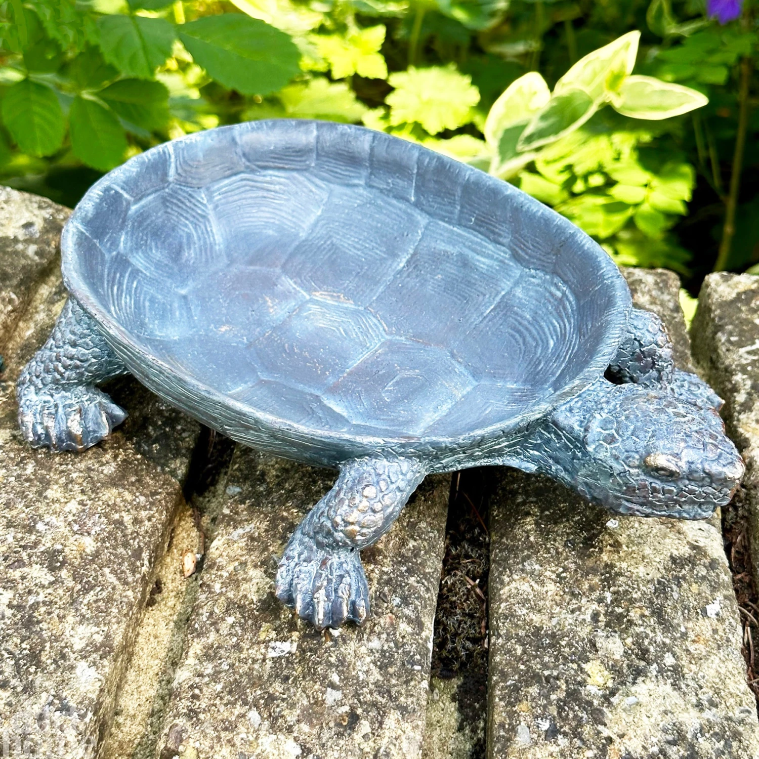 A delightful gift for any bird enthusiast, this Tortoise Bird Bath Resin Bronze Small Water Shell Dish Seed Feeding Station looks charming in any outdoor garden setting. Its unique design features a weather-resistant resin bronze shell with a deep water basin for birds to bathe and drink. Enjoy the beauty of nature as birds flock to your garden!