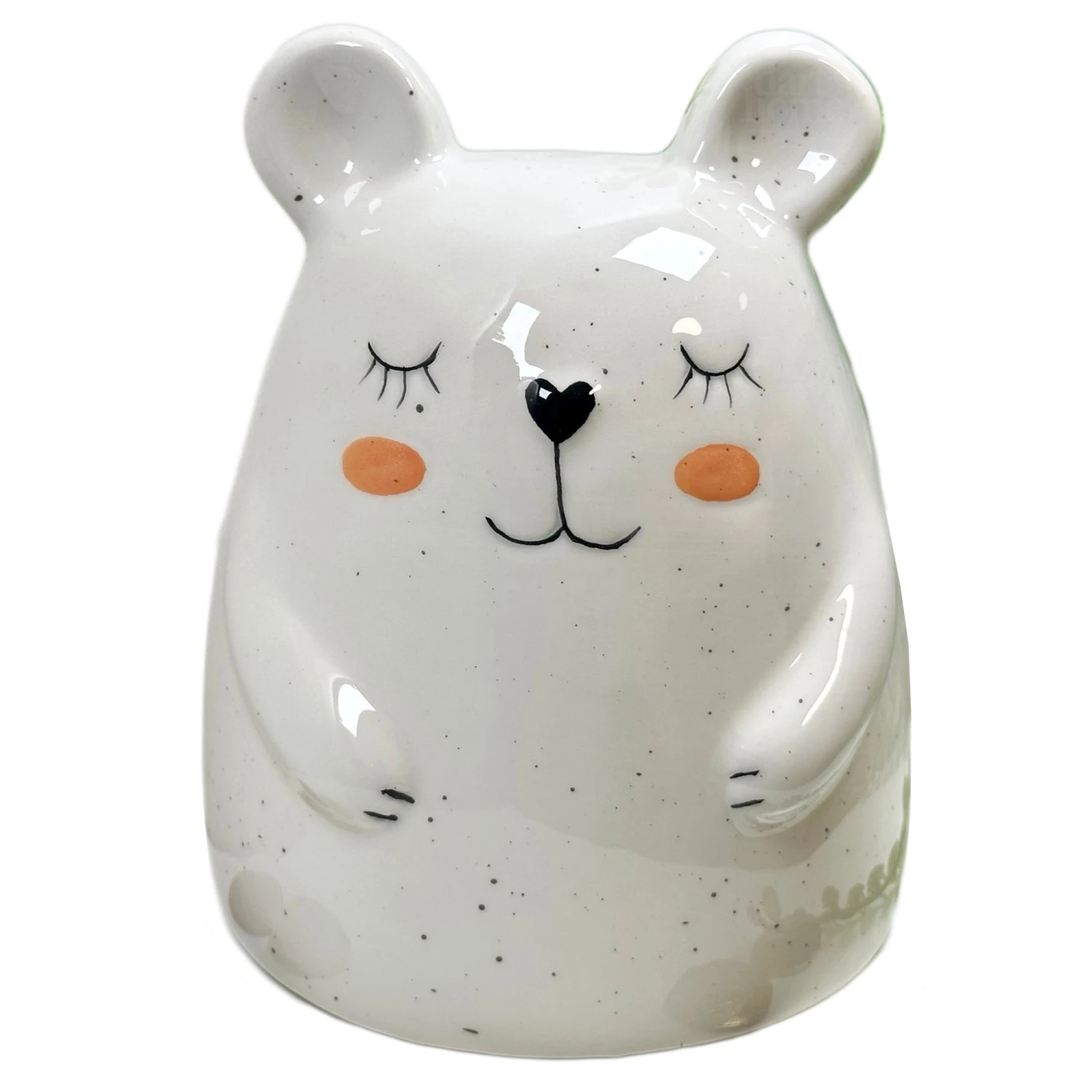 A coin moneybox featuring a white speckled blushing mouse, perfect for keeping your pounds and pennies safe until they need them! Made from ceramic, glazed and completed with a hand painted finish, this cute and animated animal money bank features a top coin slot and a silicone cup on the bottom.