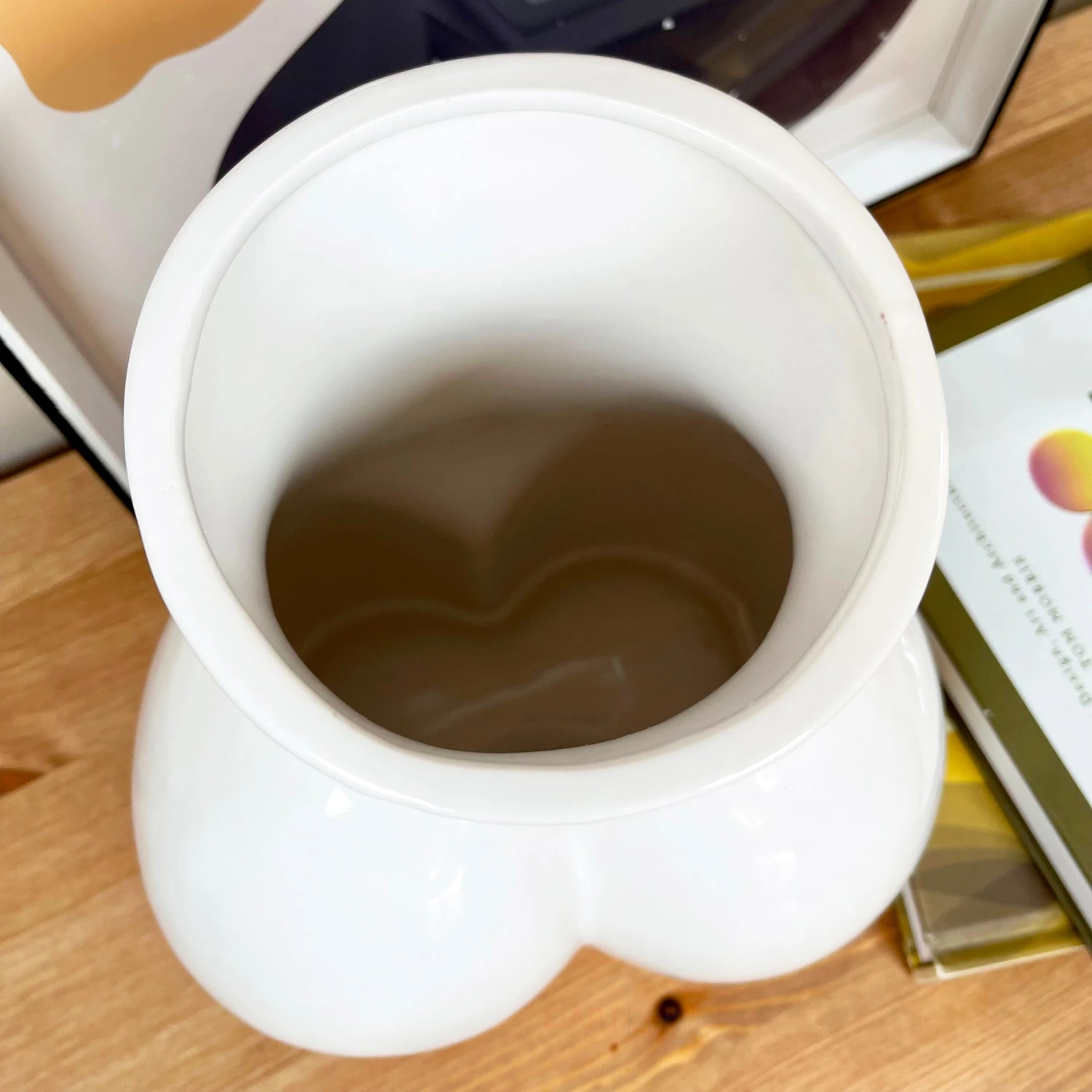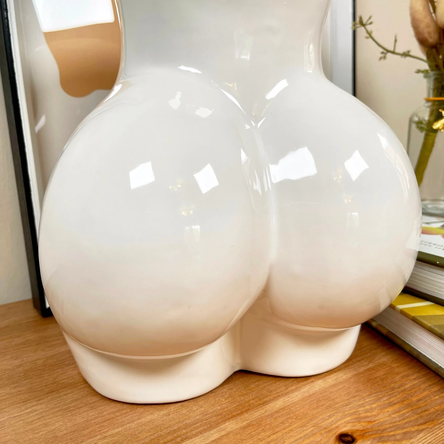 Cheeky bum vase in a glossy white finish showcasing the beauty of a natural female body. Keep this ceramic booty vase empty for decorative use or fill with your favourite flower blooms. Size large.