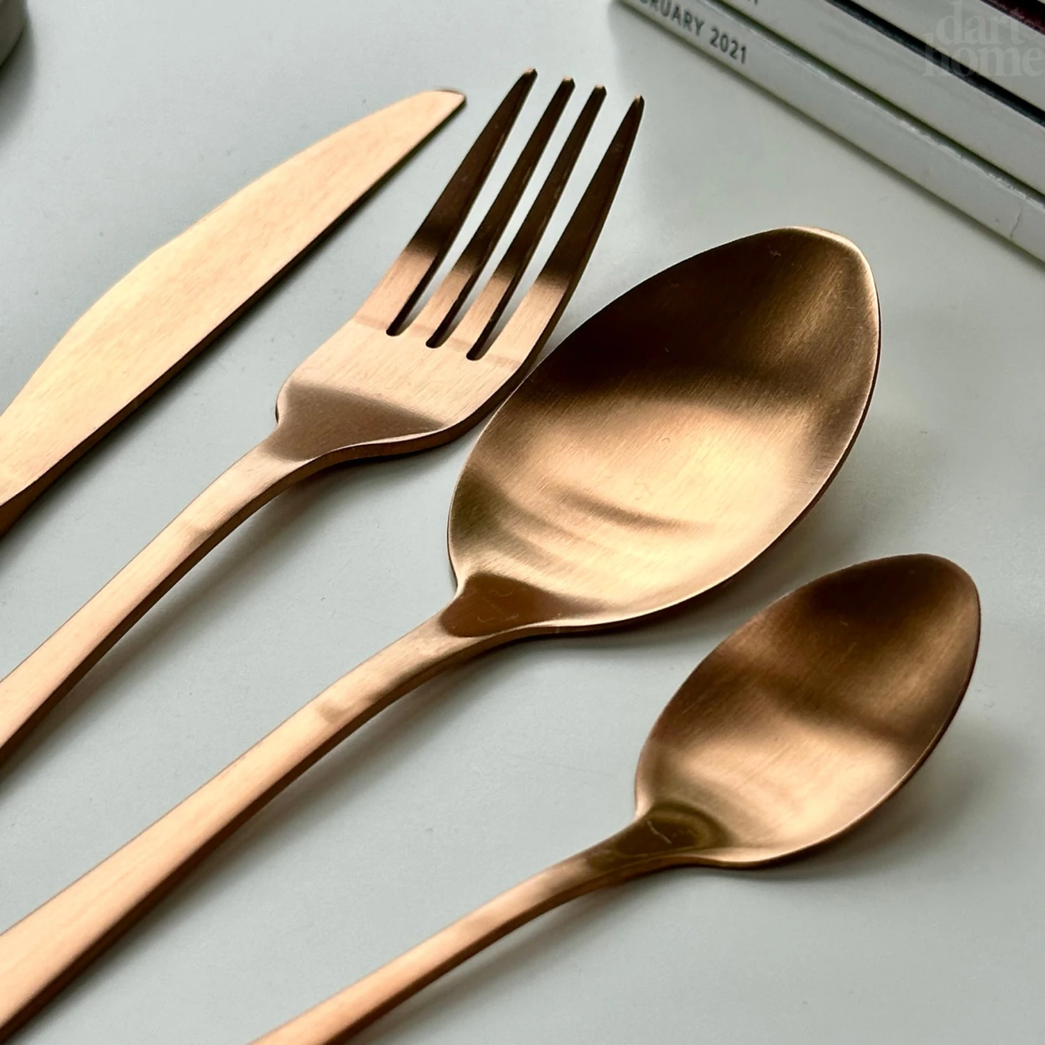 Upgrade your cutlery with our gorgeous 16 piece set. Perfect for occasional or every day use, this polished copper stainless steel set is durable, hard wearing and dishwasher safe designed to provide a luxurious, classy look whenever used.