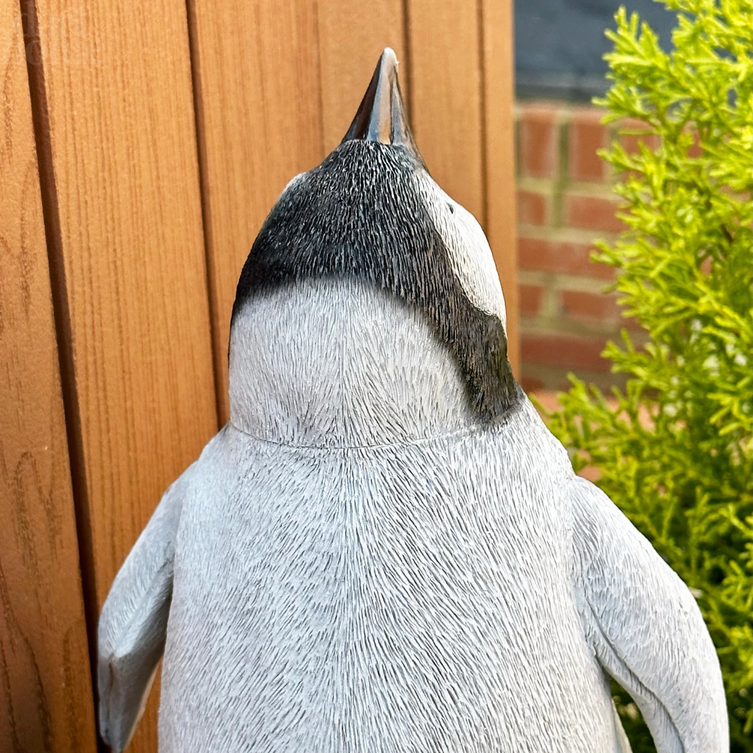 This cute majestic baby penguin squawking for his parents is a resin made sculpture, decorated with a realistic colourway that brings this little bird to life. Place indoor and outdoor for year-round decoration.