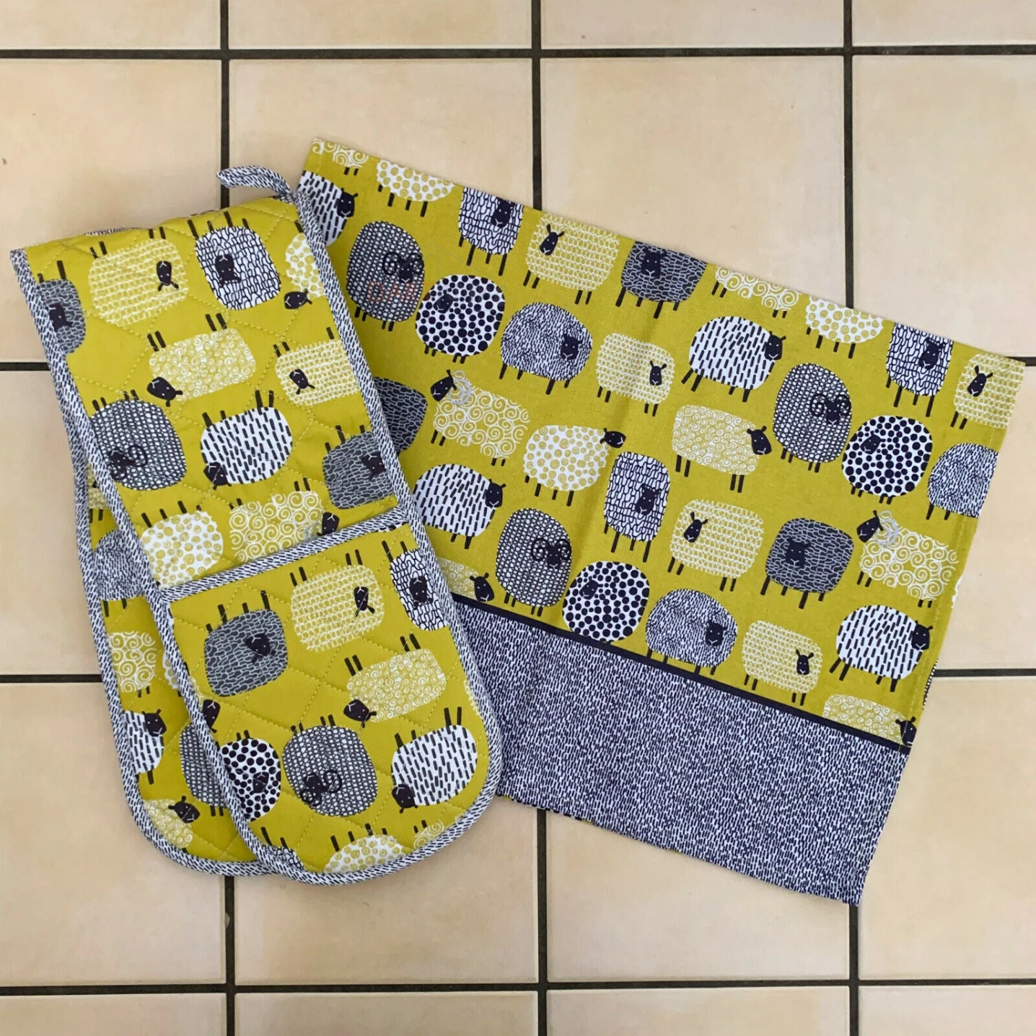 A colourful twist on one of your favourite farm animals, with their mustard and grey wool, the Dotty sheep are a unique flock. Our Tea Towels and Oven Glove kitchen sets are a must have for your home. Please Note: Unless you select set you will not recieve a set.