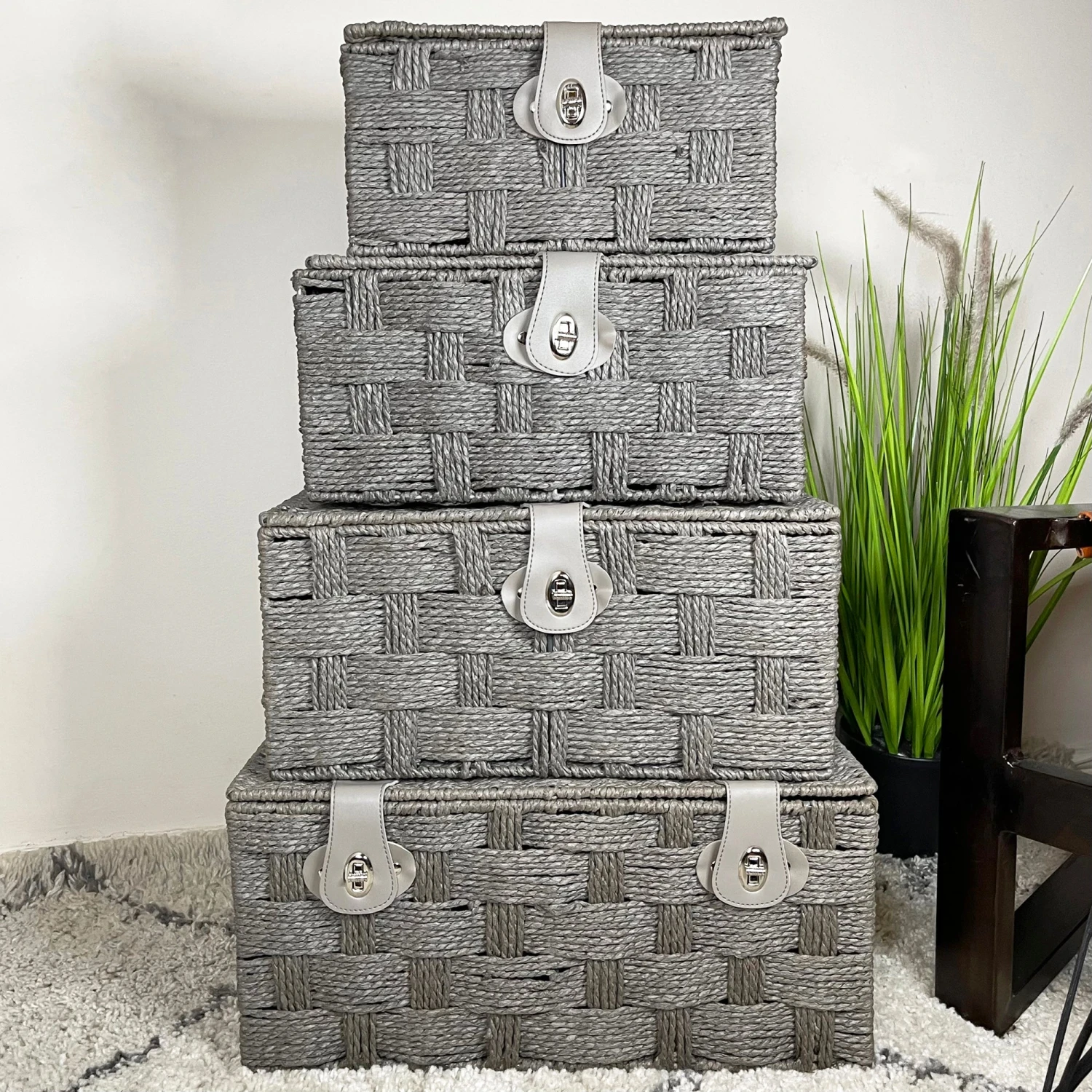 Available in four sizes, these grey rope storage basket are an ideal storage solution to have around the house, especially in the kitchen and bathroom. Made from paper rope and woven tightly, they are a high quality, durable item that every household needs.