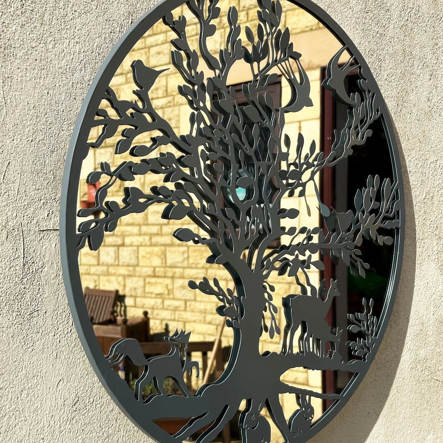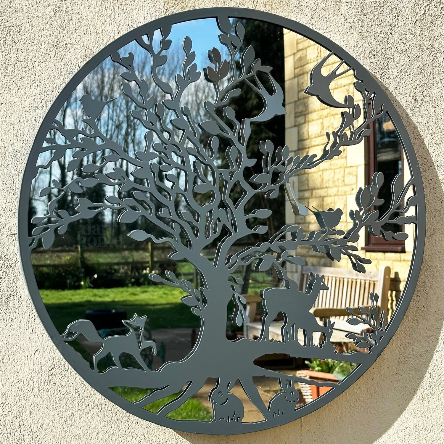 Simple yet elegant, this mirrored wall art featuring woodland wildlife in the english countryside has been designed with a modern metallic grey frame. Suitable for indoor and outdoor use, this metal framed fishing wall art will bounce light around any space, making the space seem bigger. Keyhole hook on the back to hang easily.