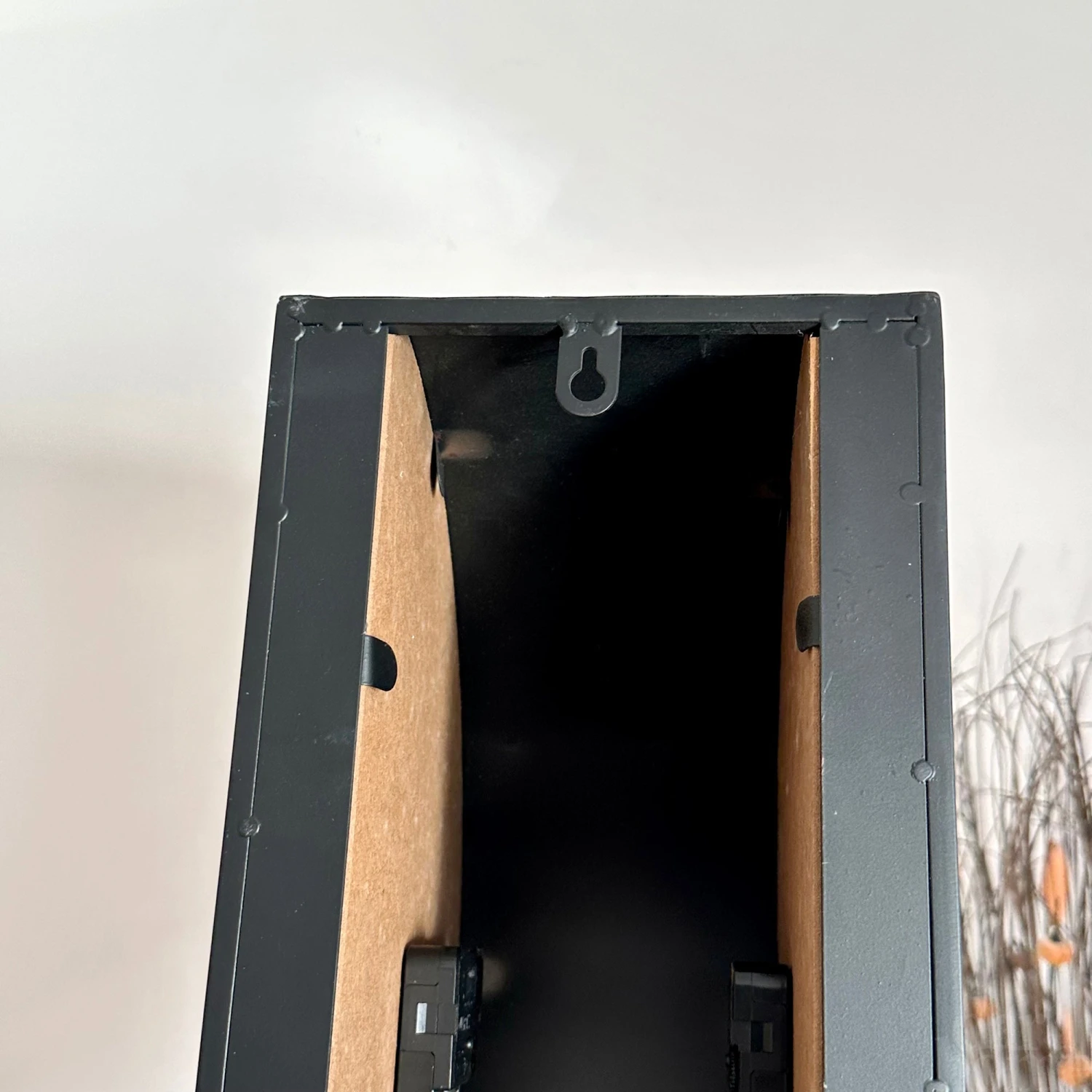 A large industrial railway wall clock features a retro double sided station design. This double sided railway clock is a battery powered piece with a quartz movement, boasting an arabic numeral display with non-numeric marks surrounding the face. AA batteries required (not supplied).