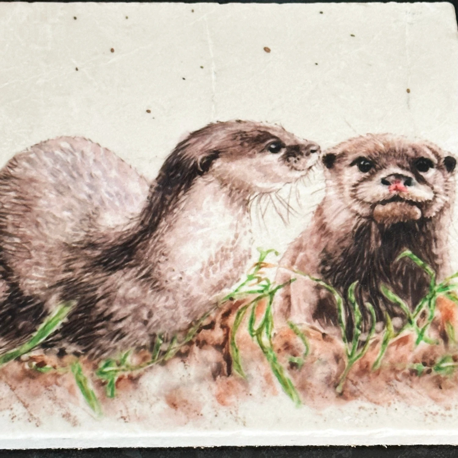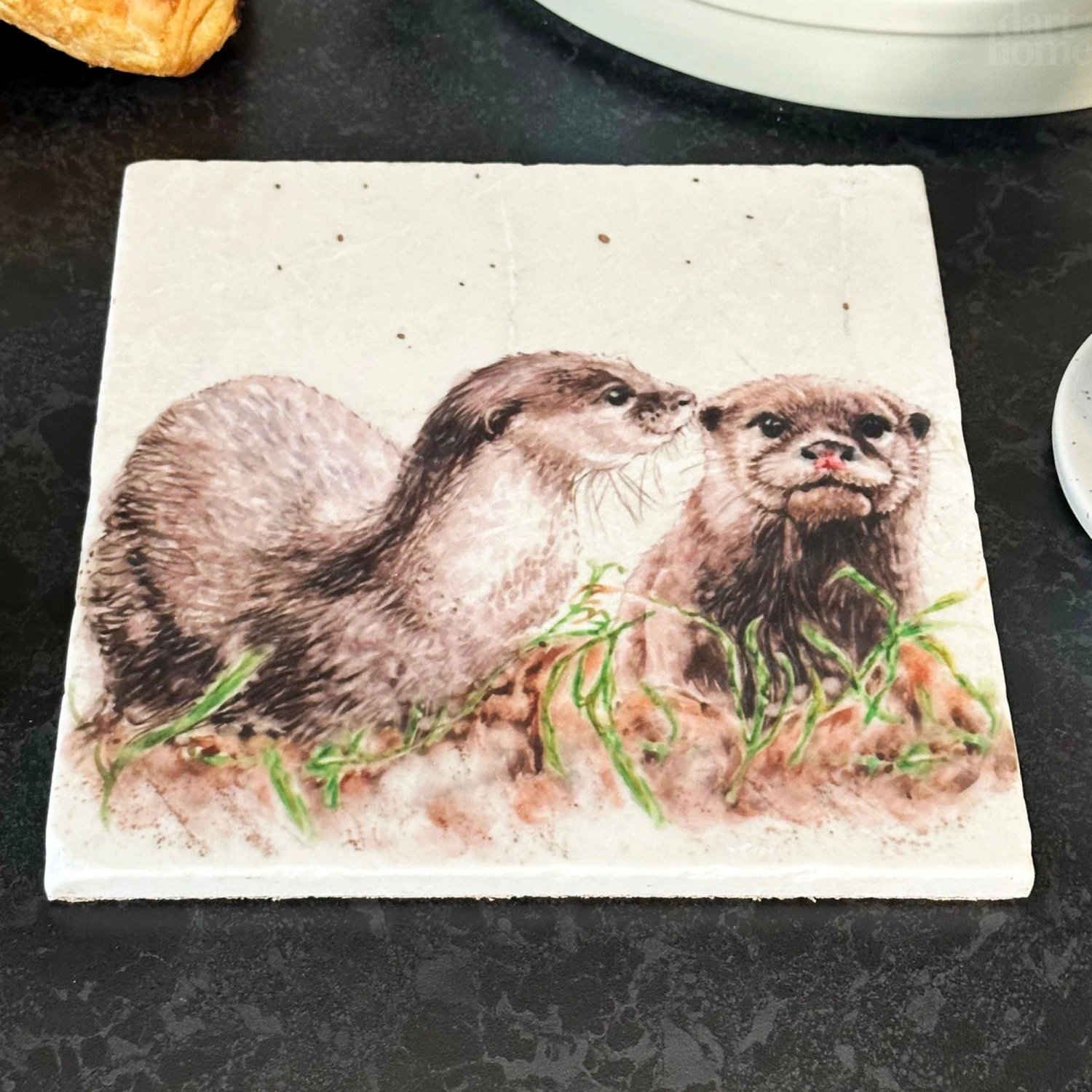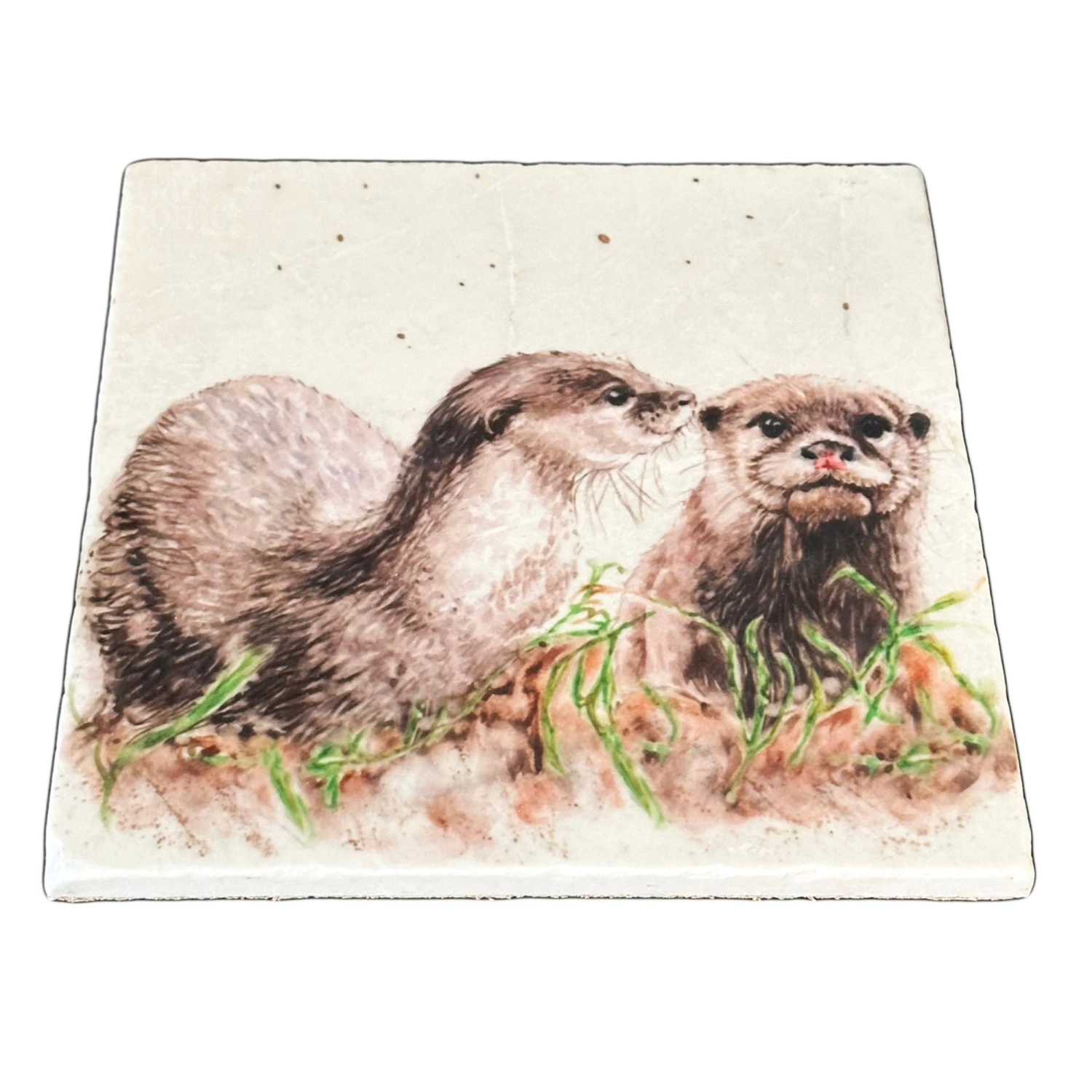 Add whimsical charm to your kitchen worktop with a handmade, marble Lakeside Otter Tales Trivet. Its vibrant colors and country art design create a pleasant, cozy atmosphere in any home. Enjoy this delightful square, pot saver to keep your kitchen looking fresh.