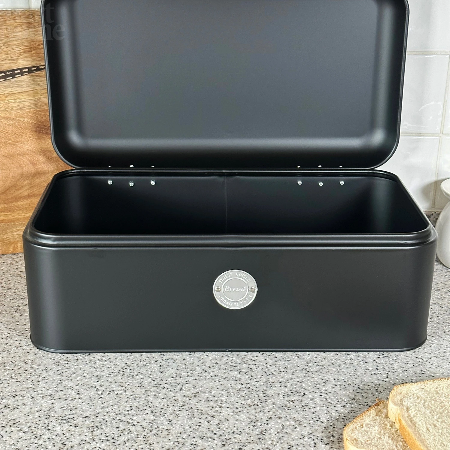 This matt black bread bin is a stylish and functional addition to your kitchen. The metal storage container features a chrome label and handle which securely stores your food. With a sleek and modern design, this bin is the perfect choice for keeping your kitchen organised and stylish.