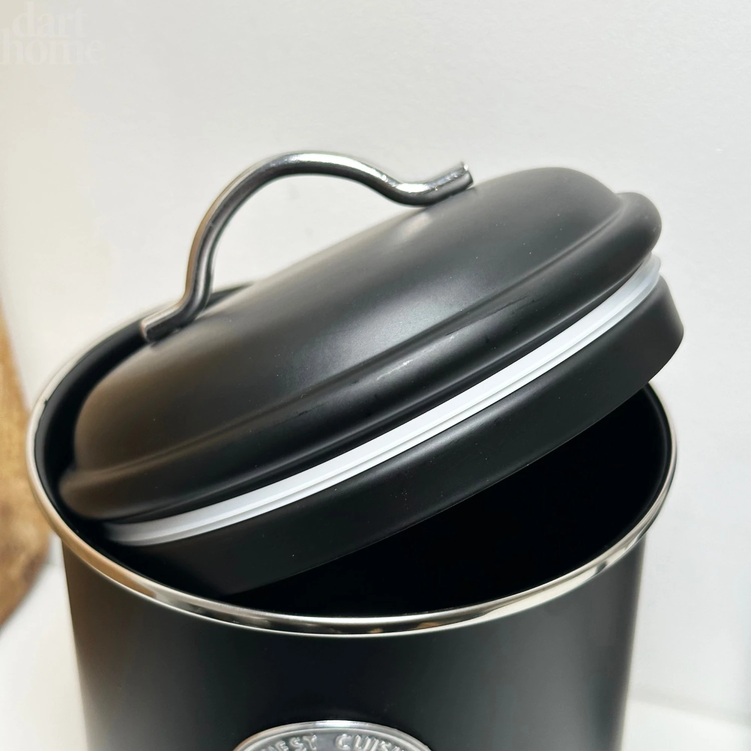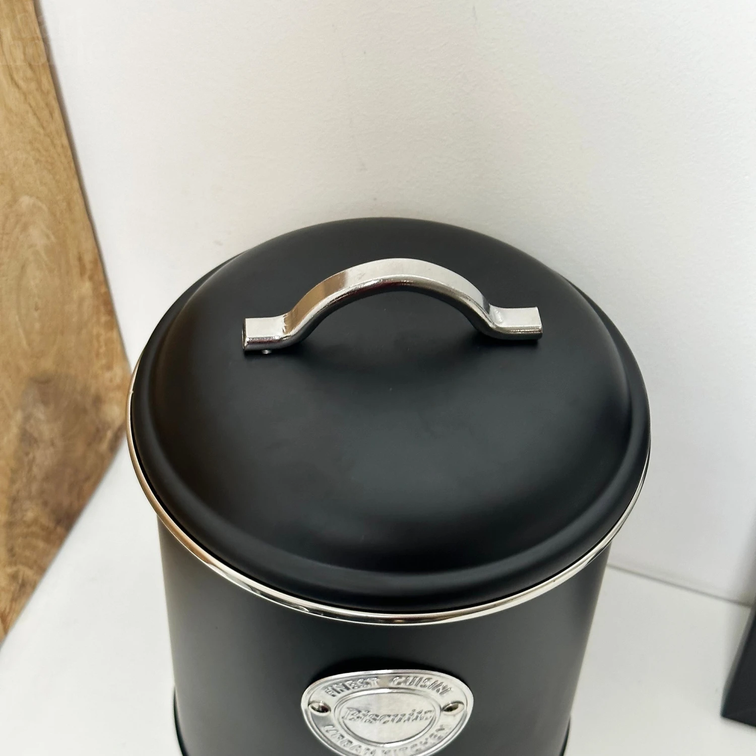 This stylish necessity is the perfect storage solution that you need in your kitchen to help organise the house. This storage biscuit tin is made from quality metal and has a monochrome matt finish with a chrome handle and jar label that will serve you well for however long you will need it.