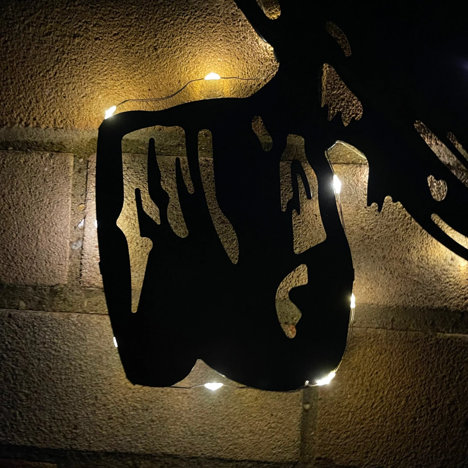 Beautiful piece of solar wall art made from metal. This design boasts a contemporary barn owl. When lit at night with solar powered technology, this owl softly glows into the night and offers a warm vibe to your garden. This solar wall art comes with 27 neatly placed LEDs on the back ot the honey bee creating a dark backlit silhouette when turned on.