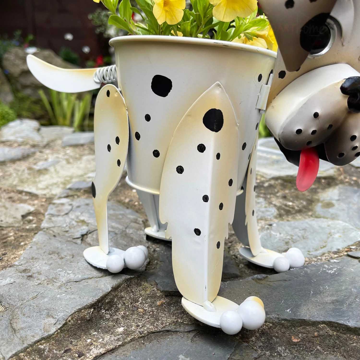 Create spectacular floral displays with a this metal dalmation dog planter in a white finish with black spots. Simply choose your favourite flowers and create a fabulous display that is sure to have guests talking for all the right reasons.