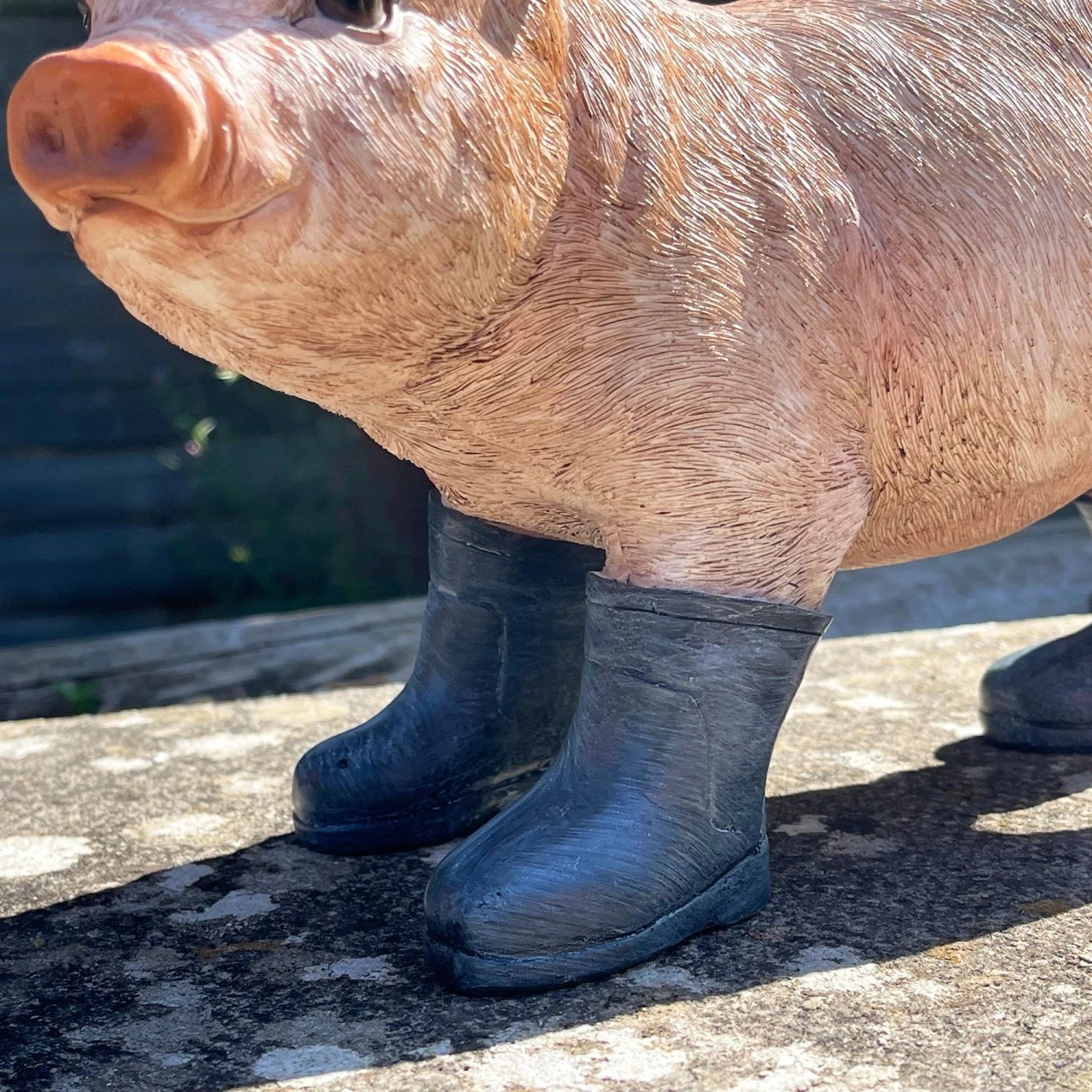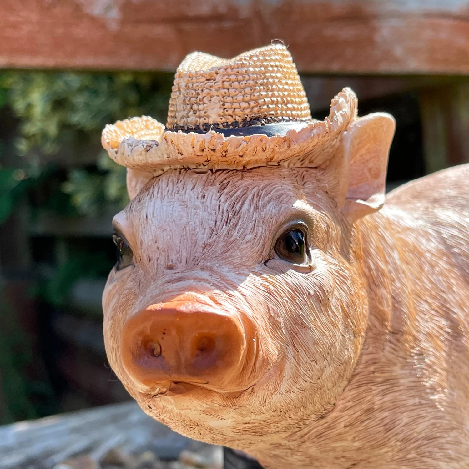 This pink pig is freestanding and made from resin. The design showcases a pig in their straw hat and wellies. The weather resistant resin makes the pig ideal for indoor and outdoor use. The sculpture would look great in your home, garden, on your lawn or patio.
