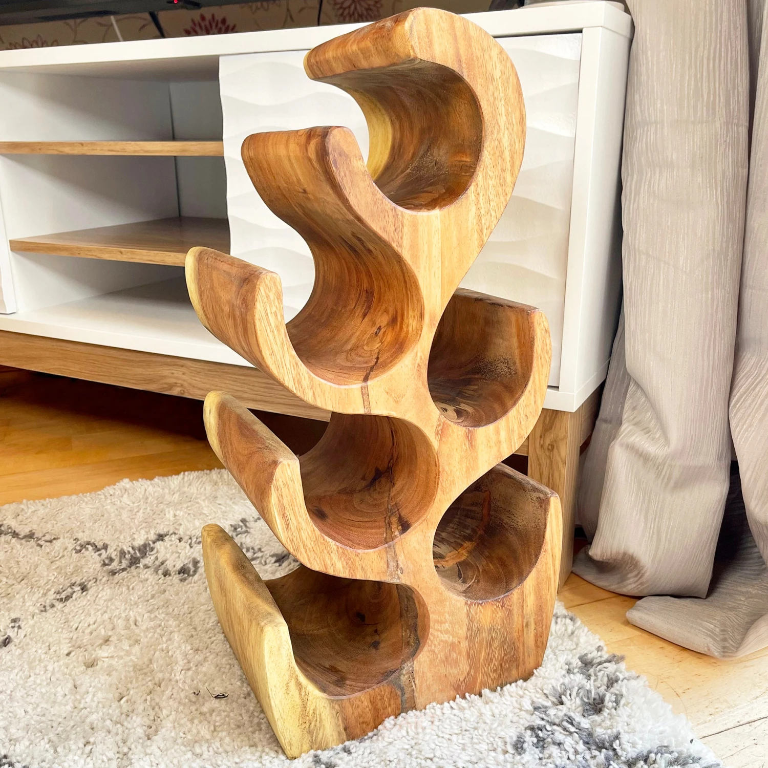 This 6 hole wine rack is great for storing your favourite wine, prosecco and champagne bottles. It will look great on a kitchen worktop, in the living room corner on neatly placed in a home bar.