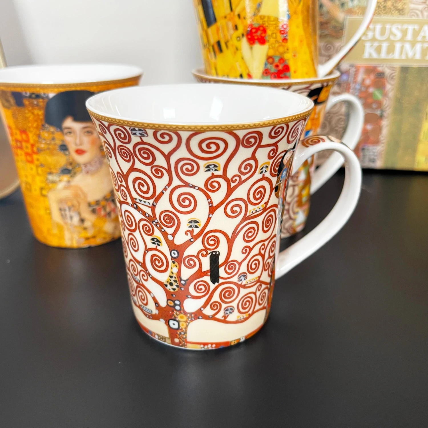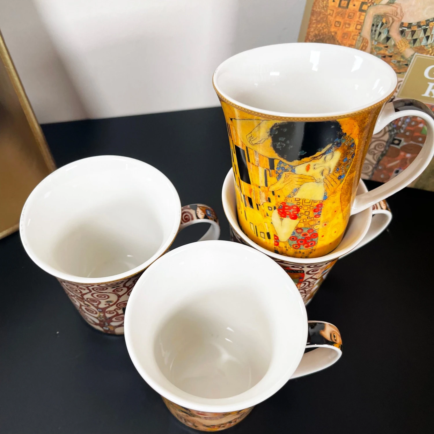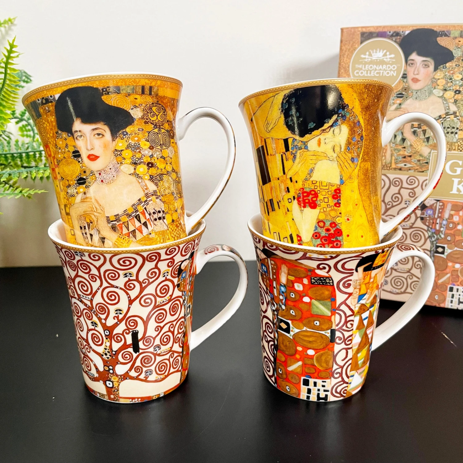 Enjoy a midday coffee to get you through the day with your favourite artists work displayed to view. These Gustav Klimt themed fine china mugs showcase four of Klimts most famous paintings. They offer approximately a 400ml capacity and display eye-catching bright colours. This is a round mug set of 4 which come gift boxed made from fine china and are microwave and dishwasher safe.