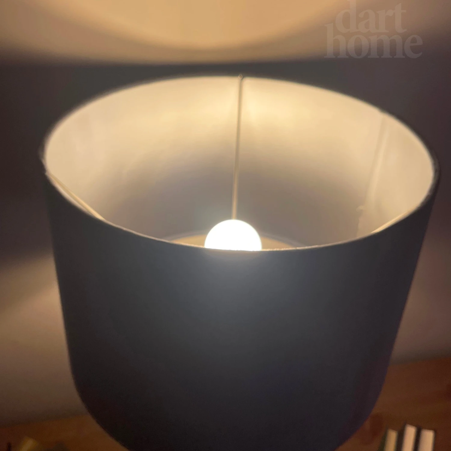 This beautiful large table lamp featuring a large silver meerkat design in a textured silver finish will instantly enhance your homes decor wherever it is placed. Made from resin, the intricate detailing of the animal adds a unique realistic touch to your living room or bedside table. This light, that requires an E27 bulb will add a warm white glow in any room and be a centrepiece. Lamp comes with a blue velvet round drum lamp shade. No bulb included.