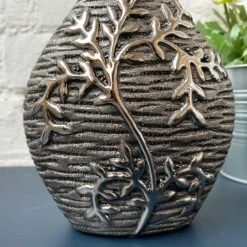 Featuring a silver metal frame with an ornate pattern and a mirrored base, this round candle plate will bounce light around the room and be a focal point wherever it is placed.