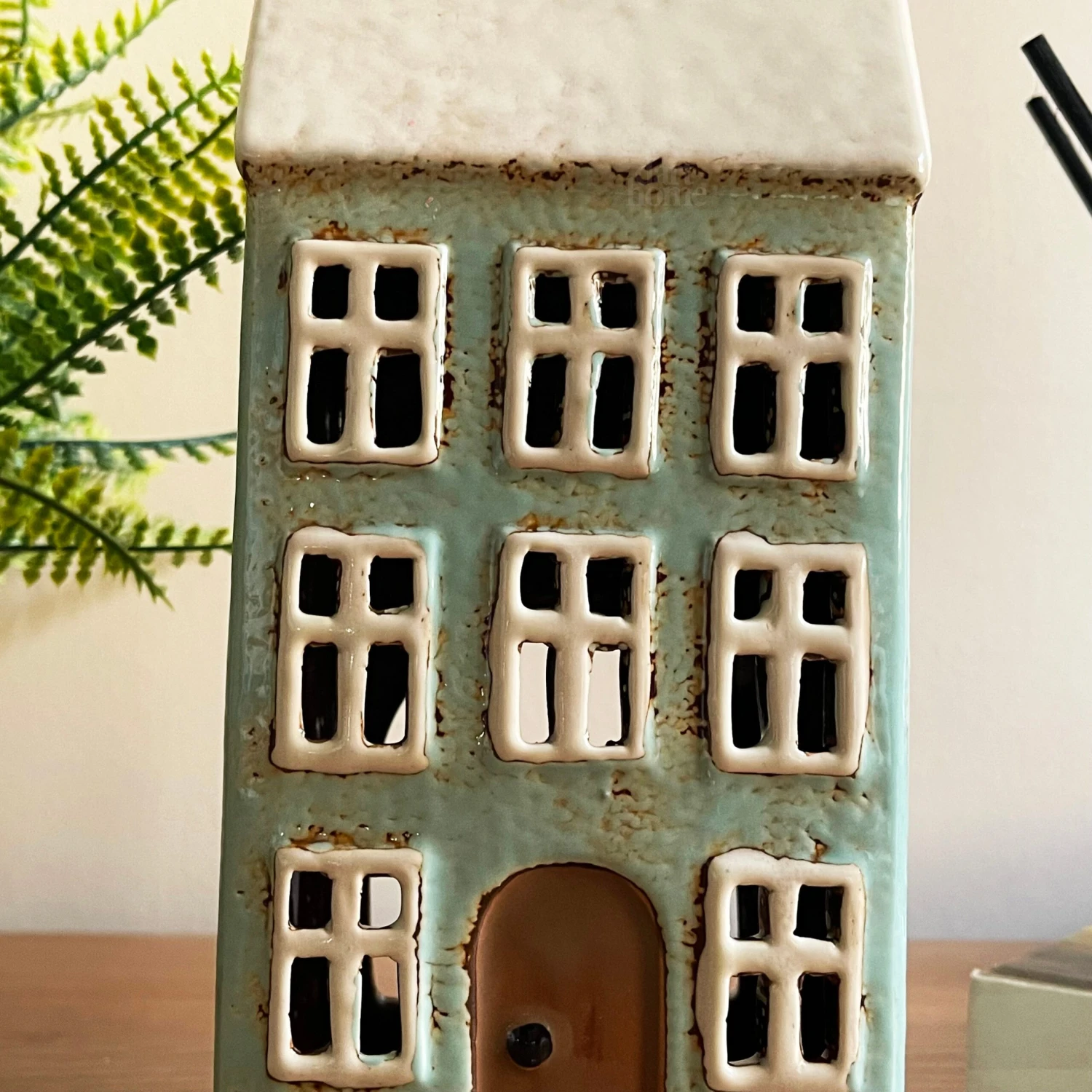 This perfect petite ceramic village cottage house candle holder is delocately made and painted to perfection. It will look great in any setting.