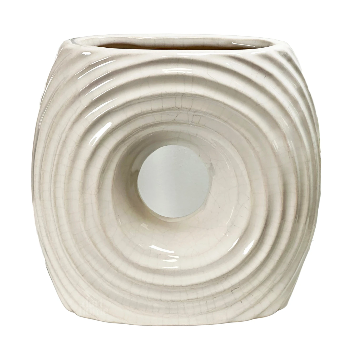 Give any room a splash of neutral decor with this round ribbed vase. Featuring a round donut shape with a crackle effect glazed ceramic finish, this donut vase is perfect for holding flower buds and stems.