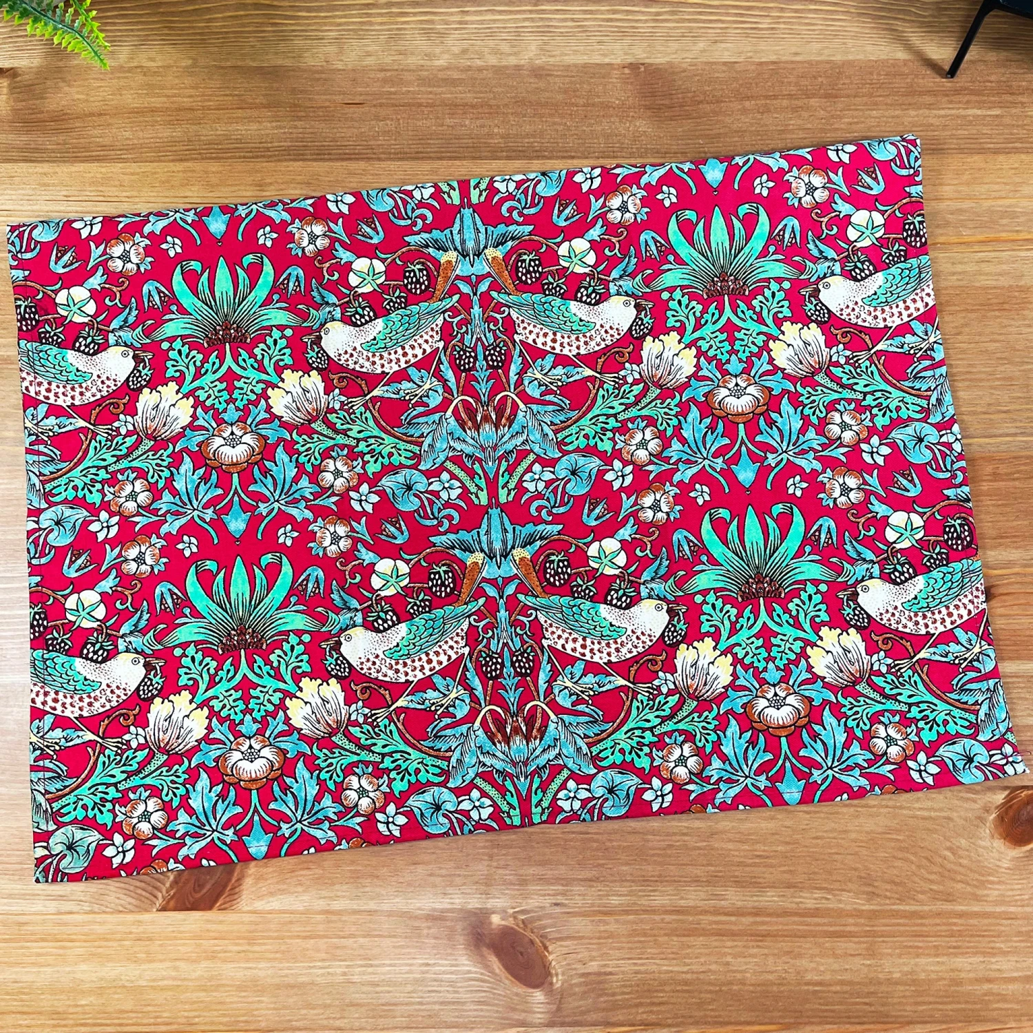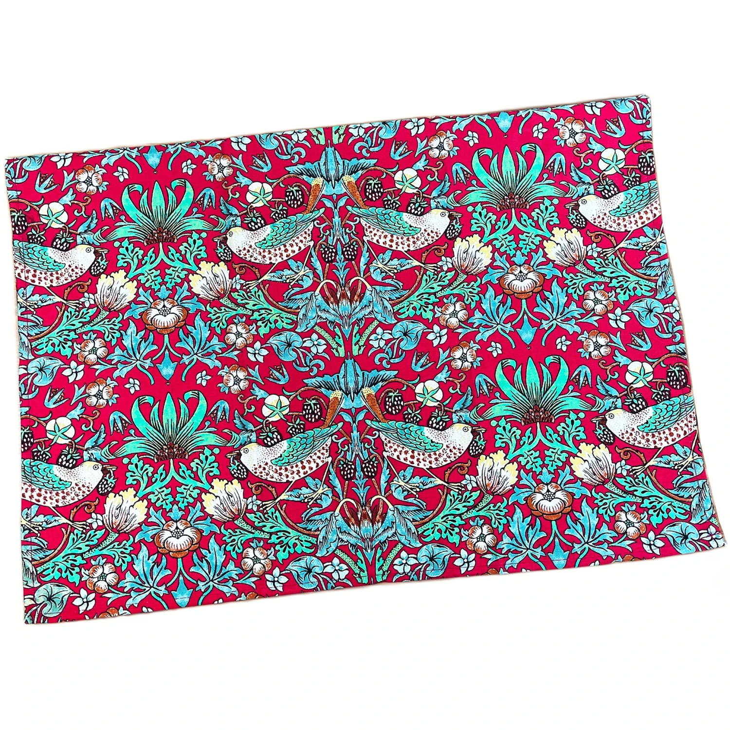 A contemporary kitchen tea towel offering a classic William Morris art design, Strawberry Thief. Made from cotton, the machine washable large tea towels will be a perfect fit for your country style kitchen decor.