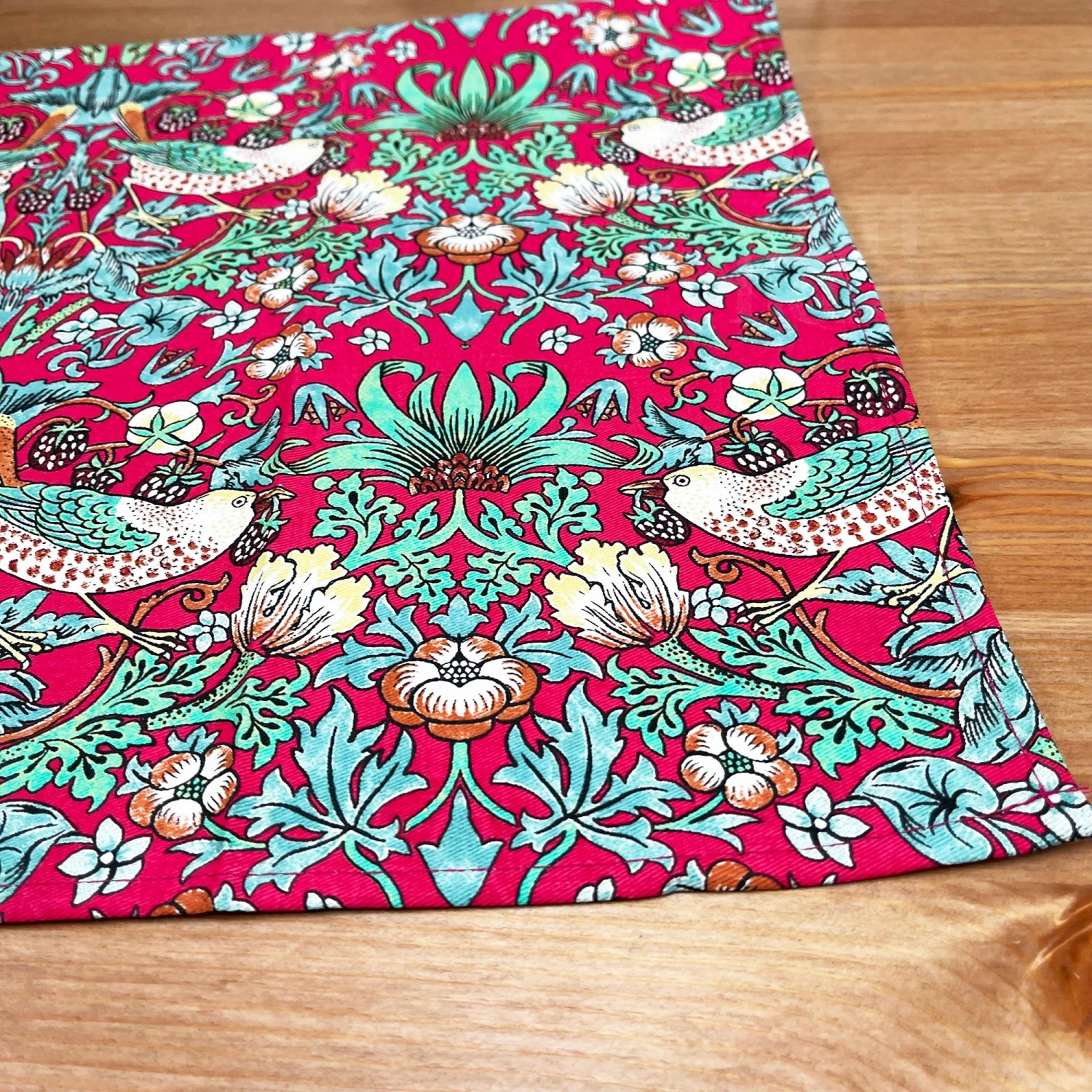 A two piece kitchen set including a double oven glove and a tea towel offering a classic William Morris art design, Strawberry Thief. Made from cotton, the heat resistant mits and towel will be a perfect fit for your kitchen decor.