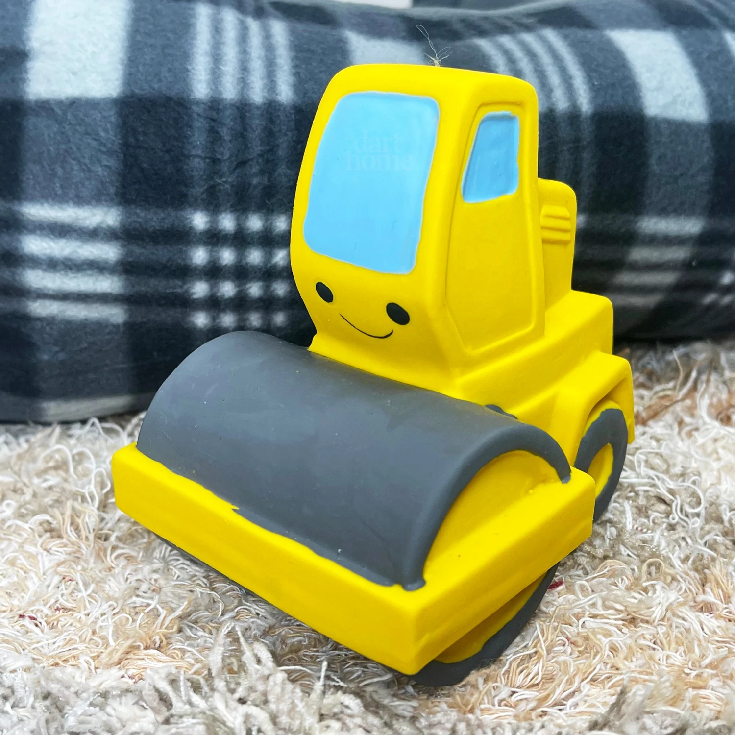 Latex Rumble the Road Roller soft chew toy for your dog Provides a combination of durable materials and interactive fun Allows dog and owner to bond over an enjoyable shared play experience Also provided with a variety of textures to stimulate their senses Great for outdoor training, instilling obedience, exercise and fun.